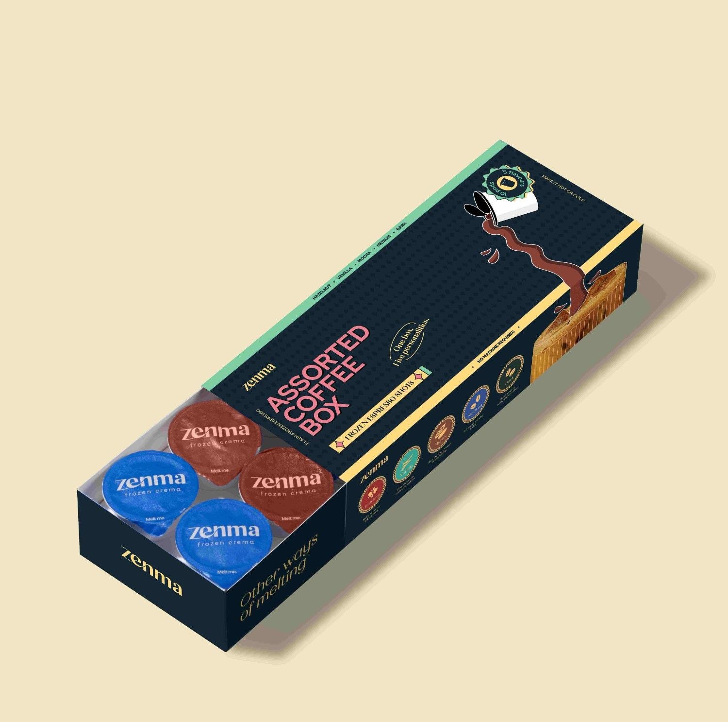Zenma is like a penguin. Needs to be in the cold. So keep it in your freezer to keep it fresh for an entire year. At sub-zero temps, Zenma shots remain solid, halting any natural degradation and ensuring they taste as fresh as the minute they were made.